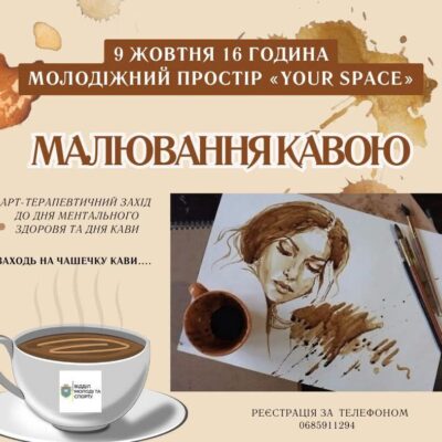 Молодіжний простір «Your Space» у Жмеринці запрошує молодь віком від 14 до 35 років на незвичайний арт-терапевтичний практикум «Малюнки кавою». Це можливість відпочити, відкрити свою творчість і спробувати нову техніку малювання — натуральною кавою! Захід проведе психологиня Центру Життєстійкості Юлія Нагорська, яка допоможе учасникам через творчий процес розкрити емоції, знизити рівень стресу та знайти внутрішню […]