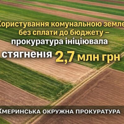 Господарський суд Вінницької області задовольнив позов прокуратури та ухвалив рішення про стягнення 2,7 млн грн за незаконне користування комунальною землею в Мурафській громаді Жмеринського району. Про це повідомляє Жмеринська окружна прокуратура 4 січня. Господарський суд Вінницької області задовольнив позов Жмеринської окружної прокуратури та ухвалив рішення про стягнення з підприємства 2,7 млн грн безпідставно збережених коштів […]