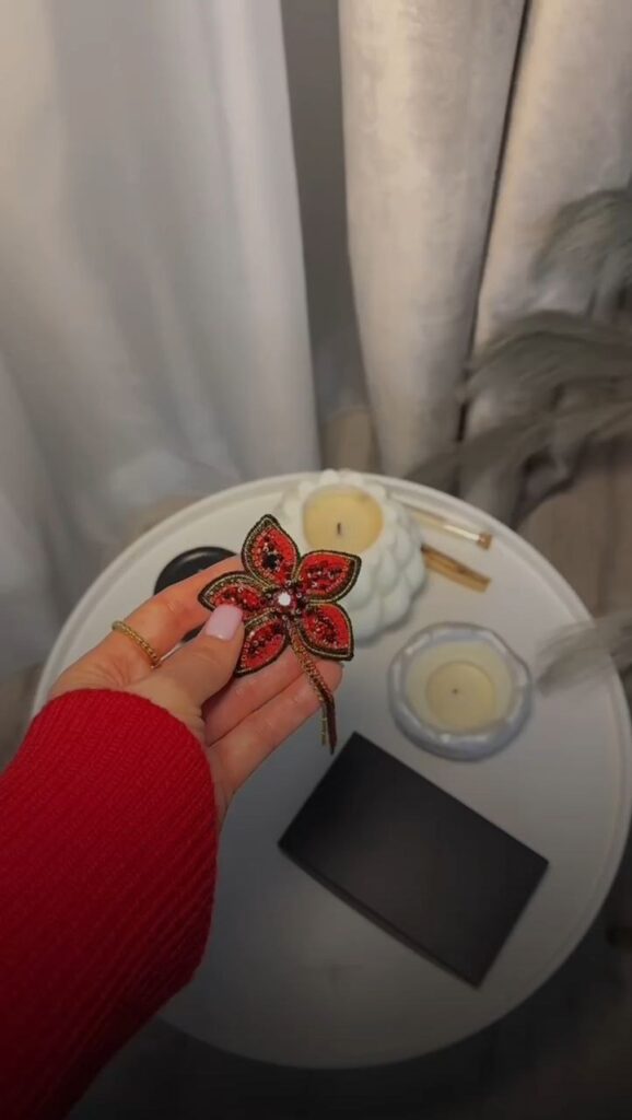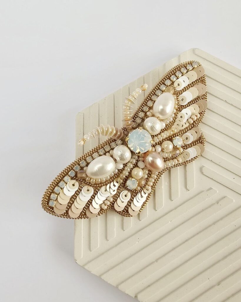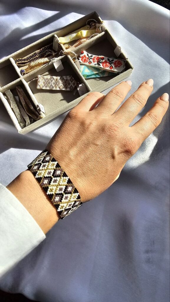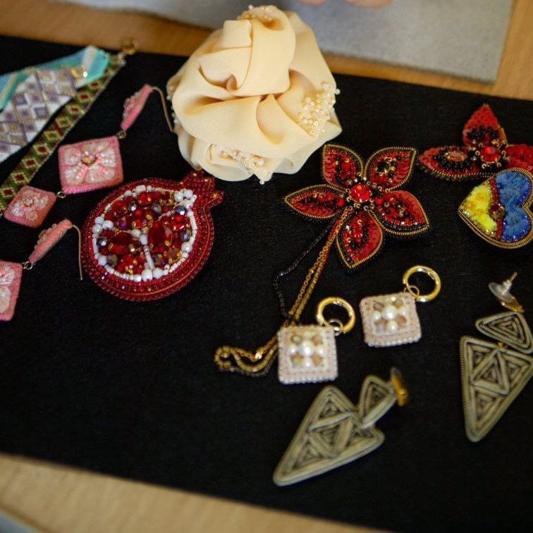 Особливою для майстрині стала її перша вишита прикраса — кольє, створене під час навчання. Тоді вона була єдиною новачкою серед учасниць і навіть не знала назв матеріалів.
