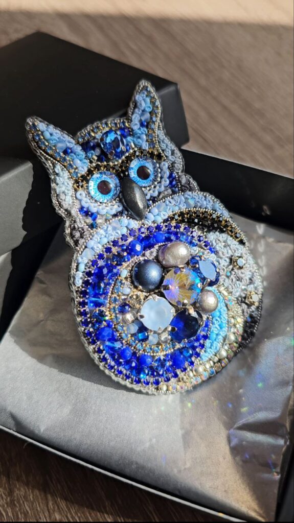 Створення однієї прикраси може займати від чотирьох до чотирнадцяти годин вишивки, не враховуючи часу на пошук матеріалів, експерименти та обробку виробу.