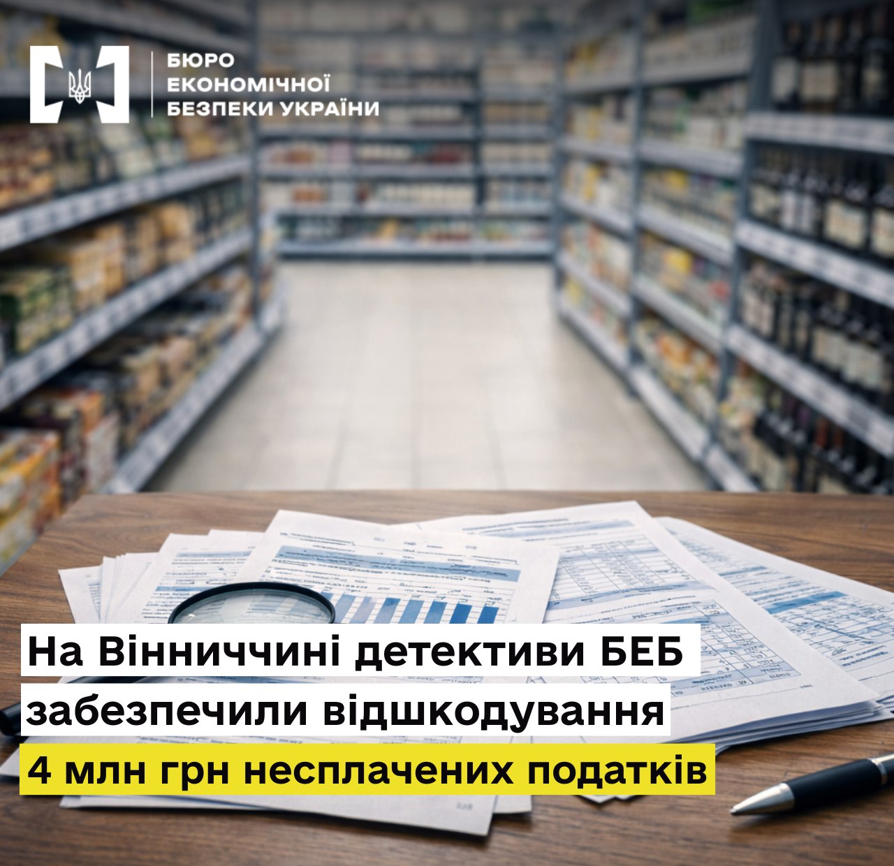 На Вінниччині детективи Бюро економічної безпеки забезпечили відшкодування понад 4 млн грн податків, які не надійшли до бюджету через умисне ухилення від сплати ПДВ. Йдеться про керівника товариства, що здійснює роздрібну торгівлю продуктами харчування, напоями та тютюновими виробами.