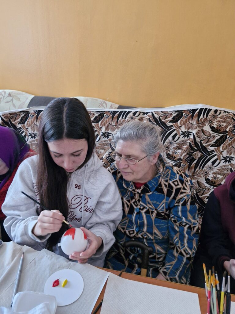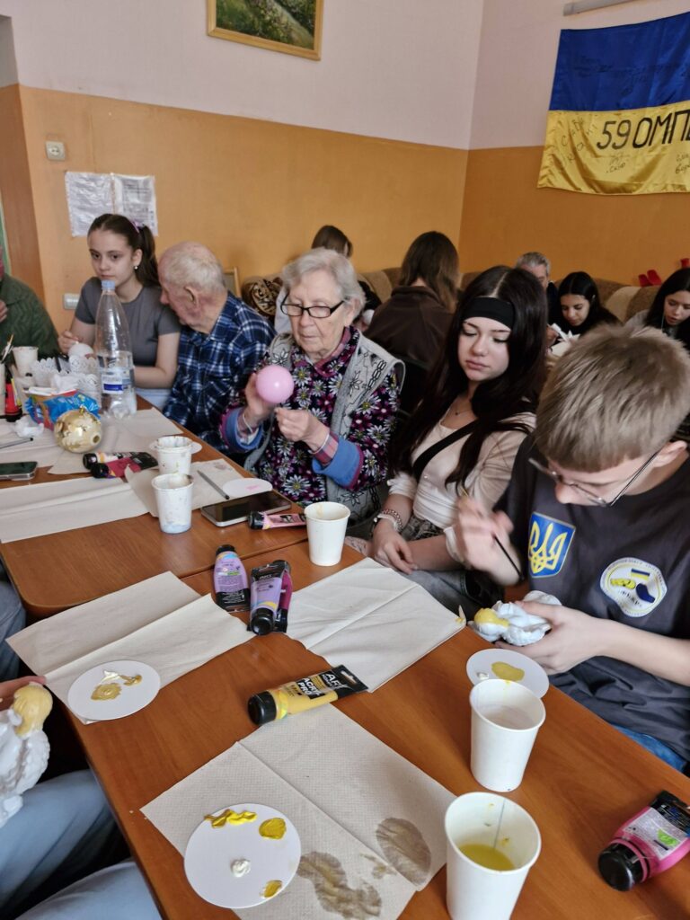 Це була зустріч, у якій поєдналися щирість дитячих сердець і мудрість прожитих років. Діти з усмішками обирали яскраві фарби, допомагали старшим наносити візерунки, а мешканці соціального центру з ніжністю тримали кожну іграшку, ніби теплий спогад із минулого.
