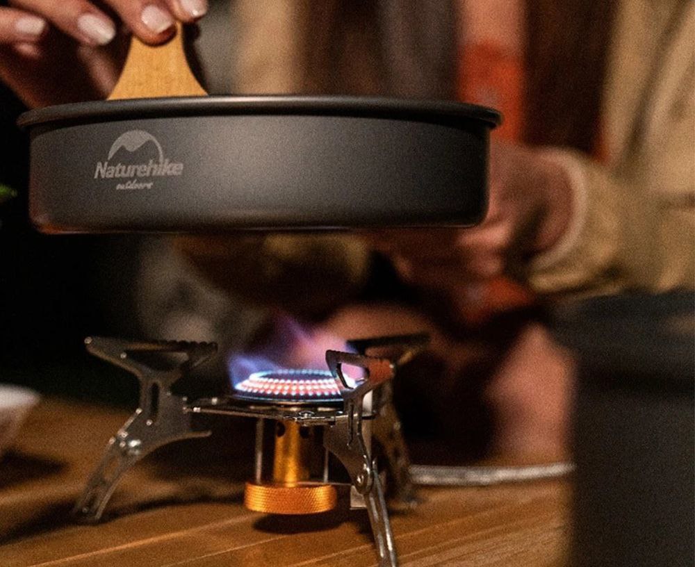 Якщо використовується газовий або туристичний пальник, його радять застосовувати лише для розігрівання, а не тривалого приготування, щоб уникнути ризику вибуху балона або отруєння чадним газом. Розігрівати їжу слід у металевому посуді невеликого діаметра, а балон після використання зберігати подалі від сонця та перевіряти на пошкодження.