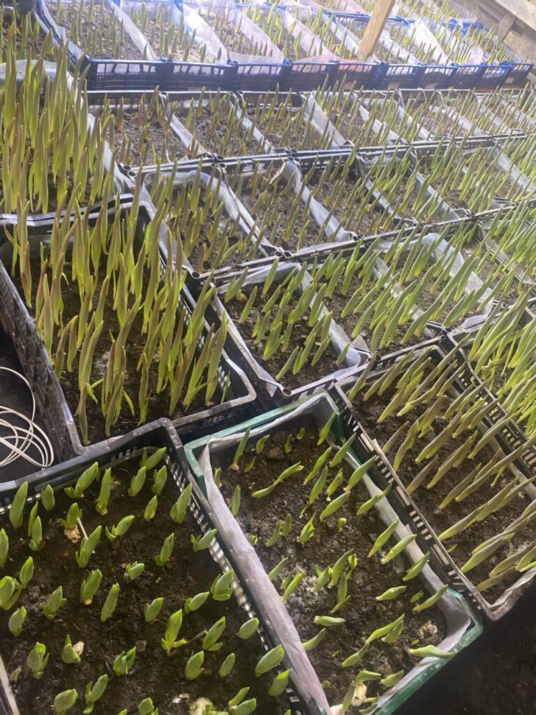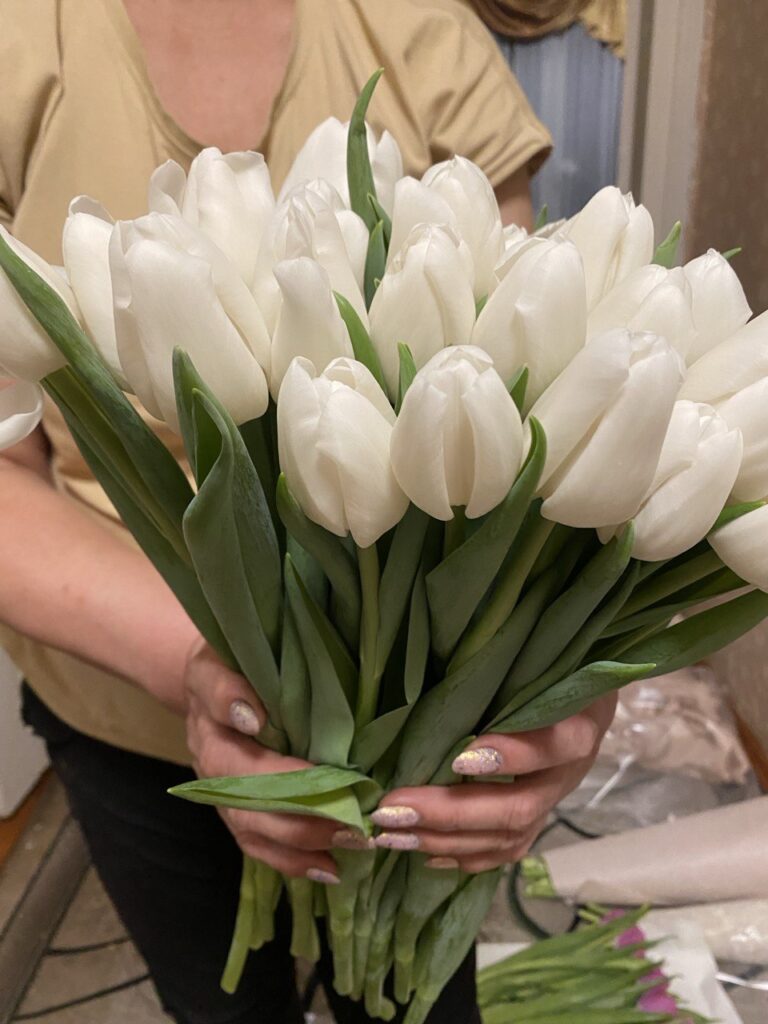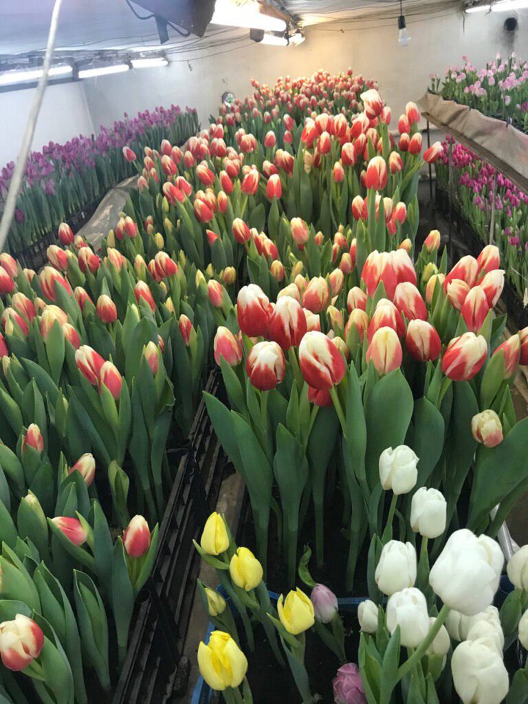 — Підготовка до сезону розпочинається ще у вересні. Тюльпани потрібно посадити в ящики та поставити у спеціальне місце до кінця січня. У лютому заносимо їх у кімнату, забезпечуємо необхідну температуру та світло, поливаємо — так вони ростуть і вже до березня починають з’являтися бутони, залежно від сортів, — розповідає Аліна Яцкова.