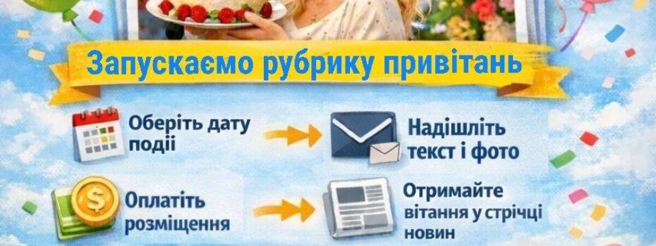 Сьогодні, 26 січня, медіахолдинг «Новини Вінниці» запускає нову рубрику, у якій мешканці області можуть розмістити привітання з важливими подіями безпосередньо у стрічці новин. Йдеться про можливість опублікувати привітання з днем народження, ювілеєм, весіллям, хрестинами або іншою подією разом із фото на новинному порталі, який щодня читають тисячі жителів Вінниччини. Для цього необхідно:– обрати дату публікації;– […]