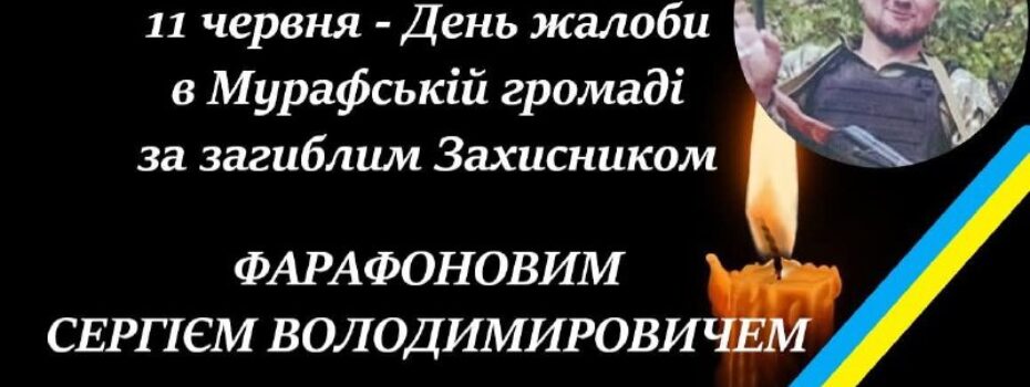 11 червня 2025 року Мурафська територіальна громада в жалобі — додому востаннє повертається Захисник України Фарафонов Сергій Володимирович. Герой загинув, захищаючи незалежність і суверенітет України в боротьбі з російським агресором. Час зустрічі: орієнтовно з 11:30 до 12:00 Жителів громади закликають гідно зустріти Захисника, створивши “живий коридор пошани” вздовж маршруту руху жалобного кортежу. Маршрут: Пеньківка — […]