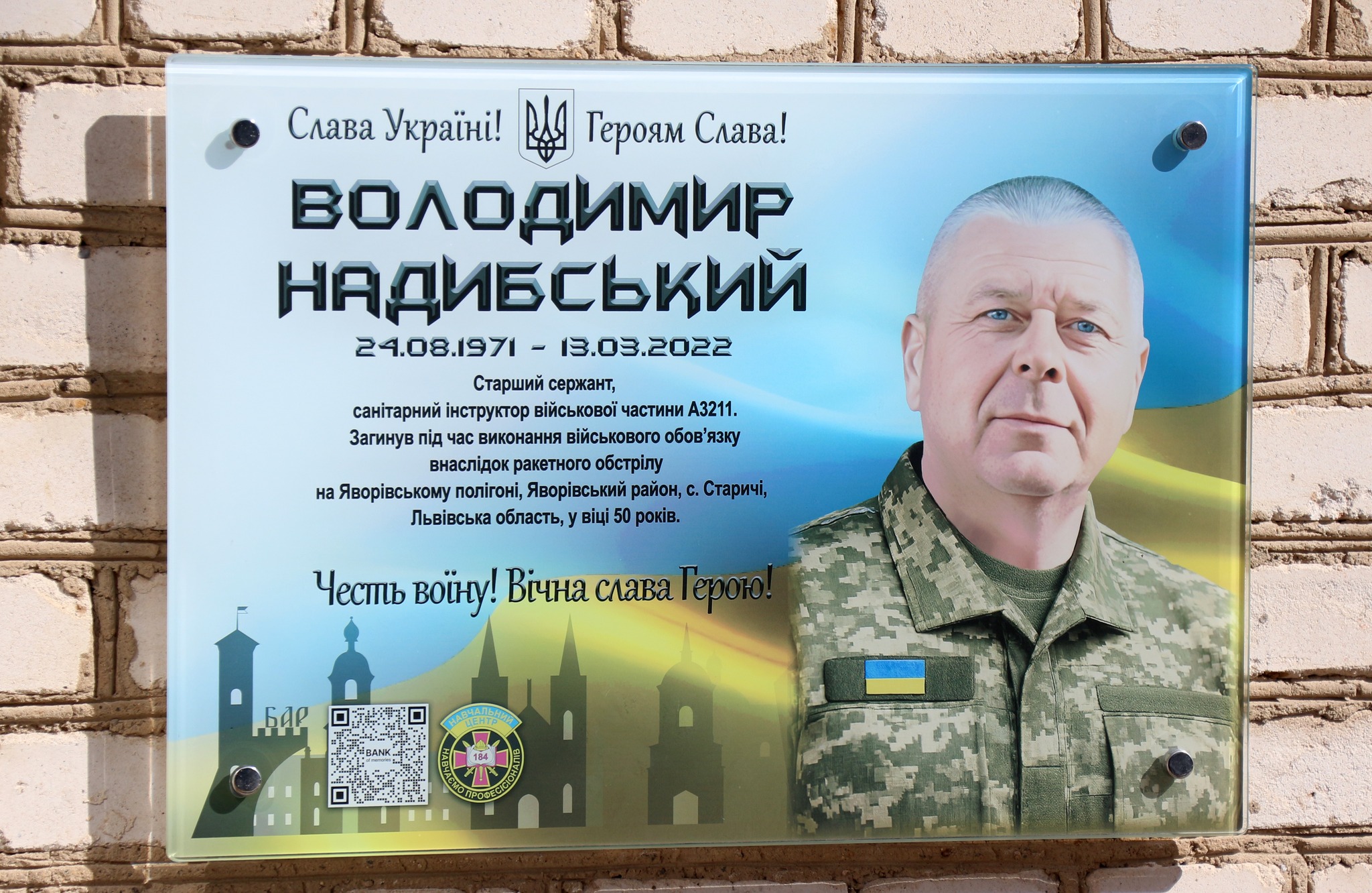 У Барі відкрили меморіальну дошку загиблому воїну та медику Володимиру Надибському