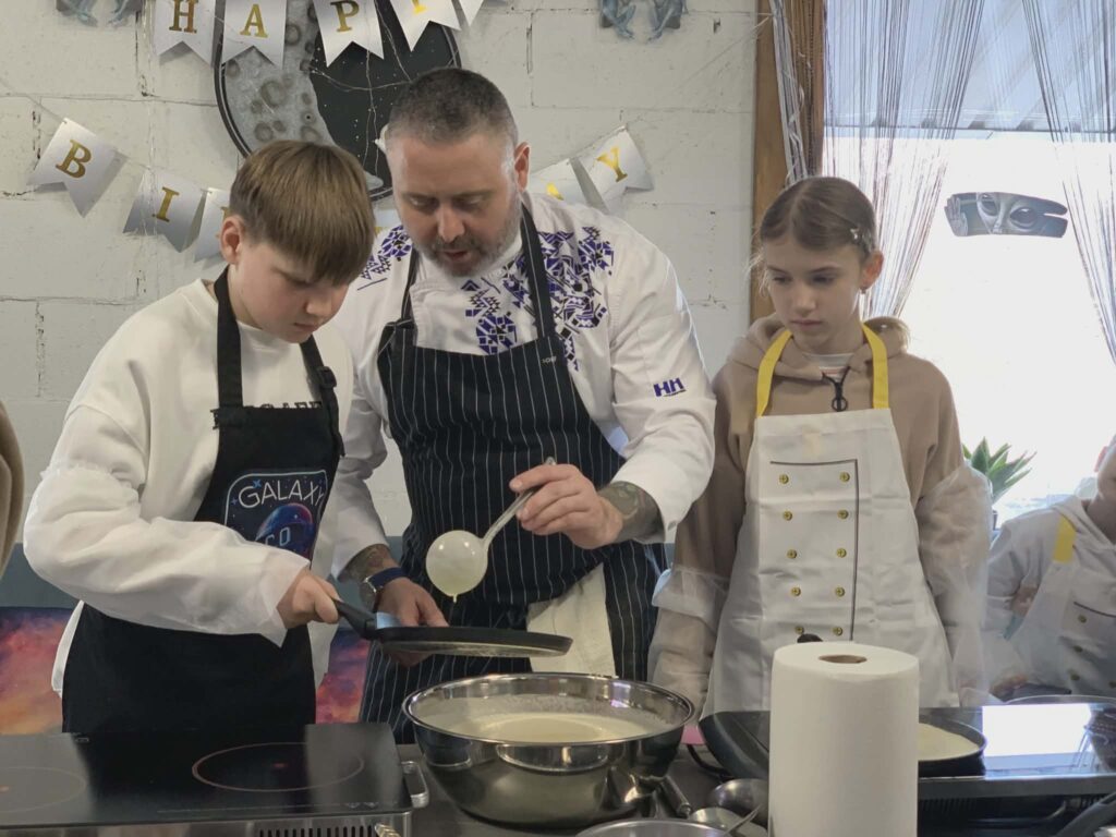 Разом із шеф-кухарем та ветераном Юрієм Грицаєм діти власноруч готували домашні млинці: замішували тісто, працювали з пательнею та прикрашали страви варенням і топінгами. Для багатьох це був перший кулінарний досвід, який подарував відчуття впевненості та радості від власного результату.