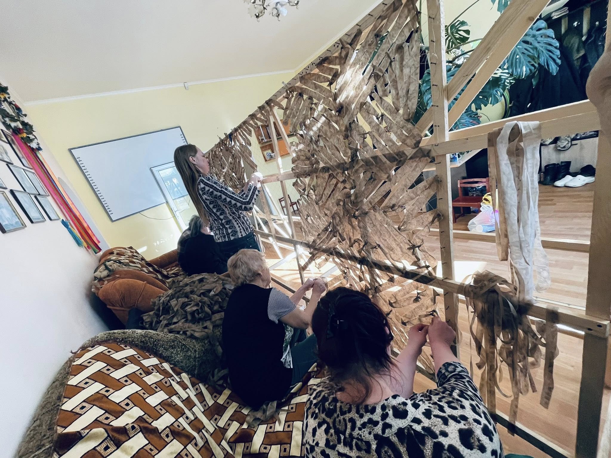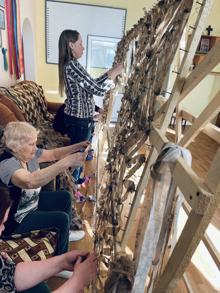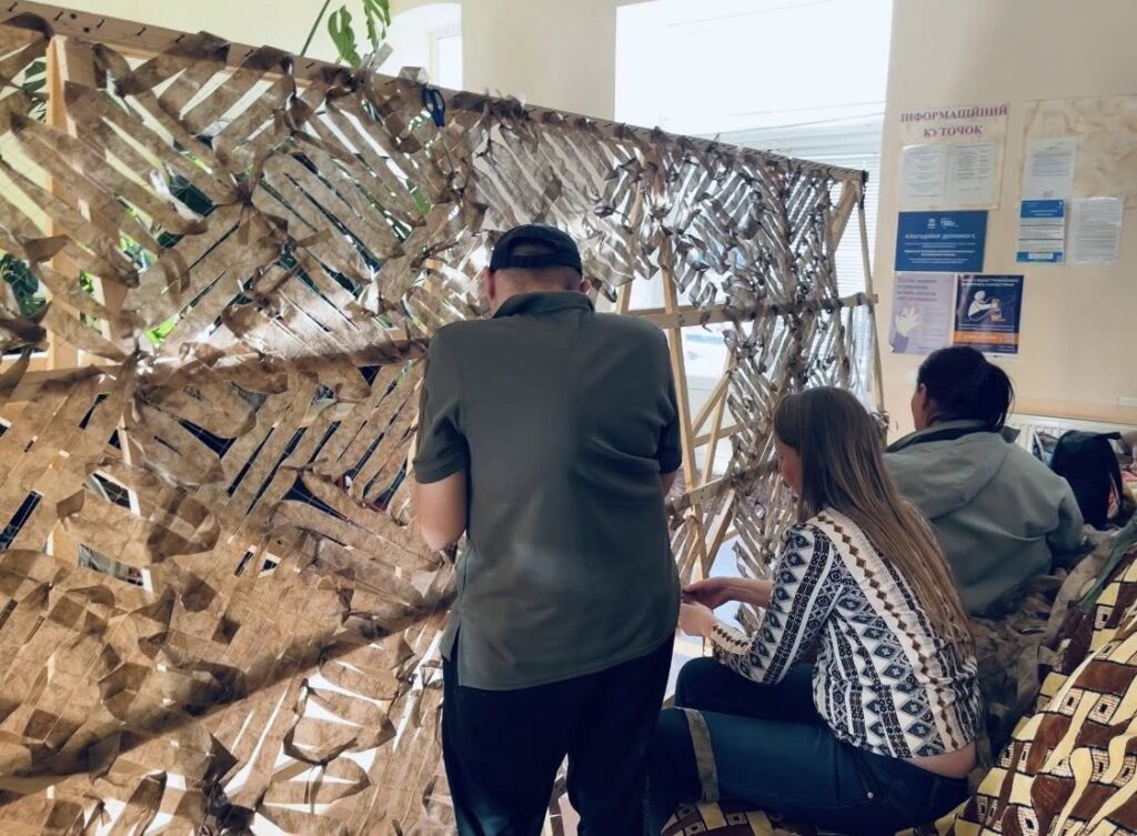 У Шаргороді переселенці та волонтери плетуть маскувальні сітки для військових