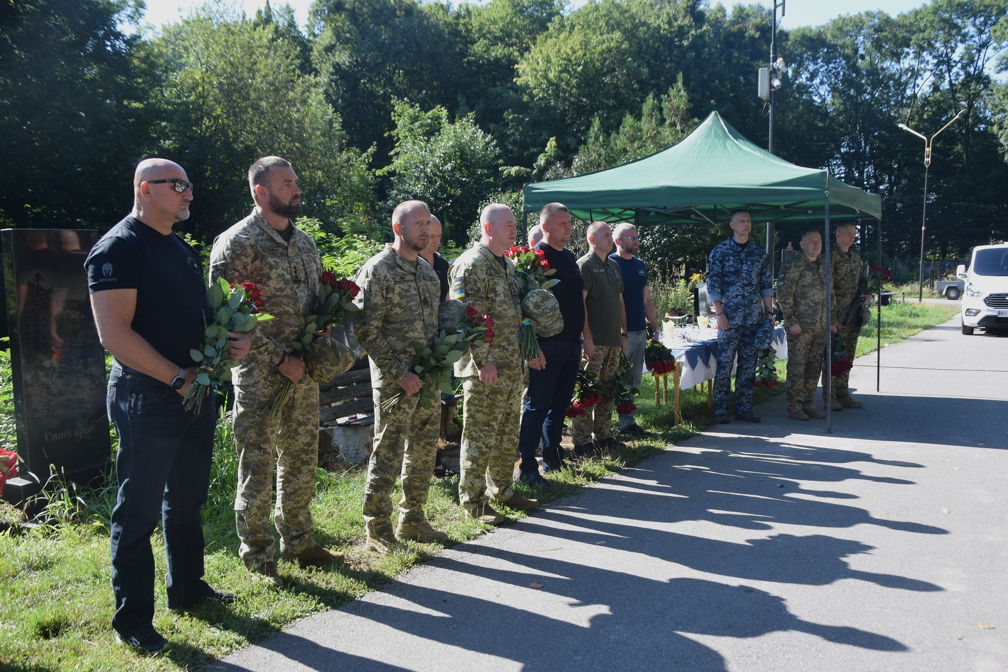 До могили Героя України Євгенія Пікуса прибули голова ДПСУ Сергій Дейнеко, начальник Південного регіонального управління Юрій Петрів, командир 3-го прикордонного загону імені Пікуса Сергій Лозінський, представники академії ДПСУ, бойові побратими, рідні та друзі воїна.